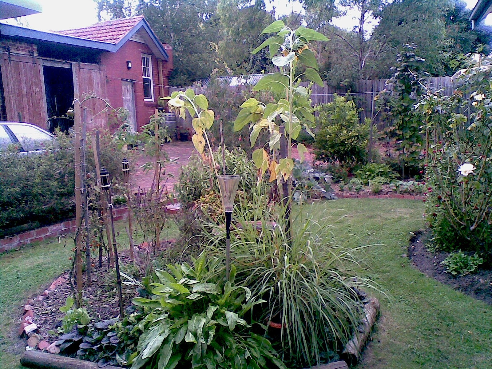 I had the pleasure of working on a wonderful example of interplanting edibles with non edibles on this largely native garden. It reminded me that veggie gardens don’t have to stand alone – but can enhance the trees / shrubs already in place. I think this is the feel that the Spiral Bed really needs. The pathway in the front native garden demonstrates how you can make the most out of the space you have. By dividing it in two by a narrow path you can walk within the garden and appreciate from within – rather than simply looking from a frontal perspective. The compost bins are also a feature which I would like to replicate with a huge pile wood down the side that needs a use. This property which was once a Dairy is an absolute pocket of country living in Melbourne. Again it reminds me that you don’t need the hobby farm – just start now where ever you are!!