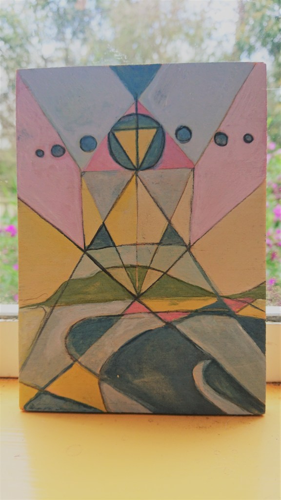 Painting it helped me a lot. It calmed my thoughts and gave me focus. It gave me a map forward. I have used sacred geometry in the past to work with Yantas but this piece had a free-form landscape which sat in connection with the unseen structures of our universe that I enjoyed watching unravel.