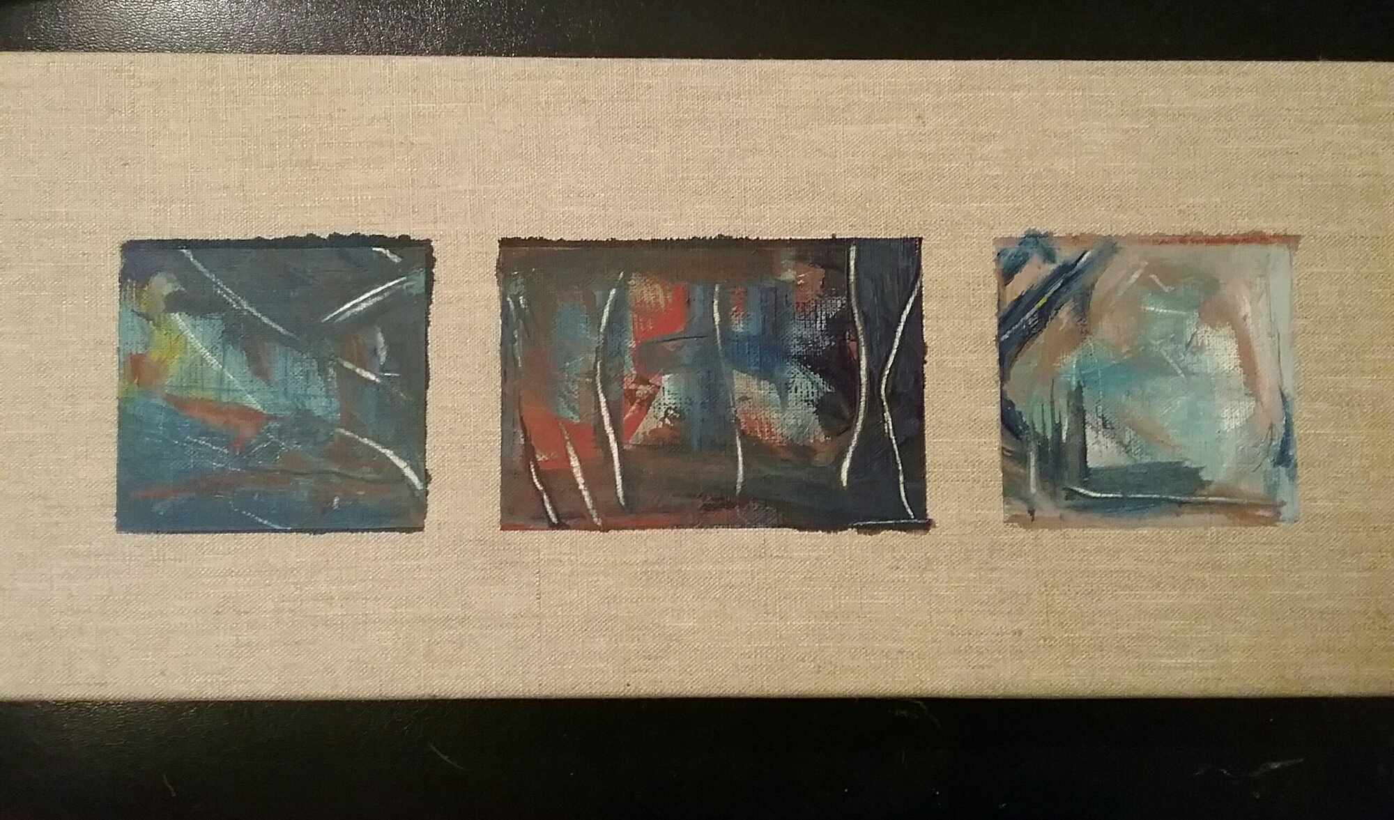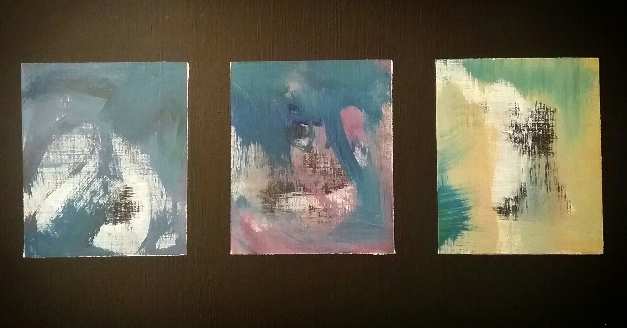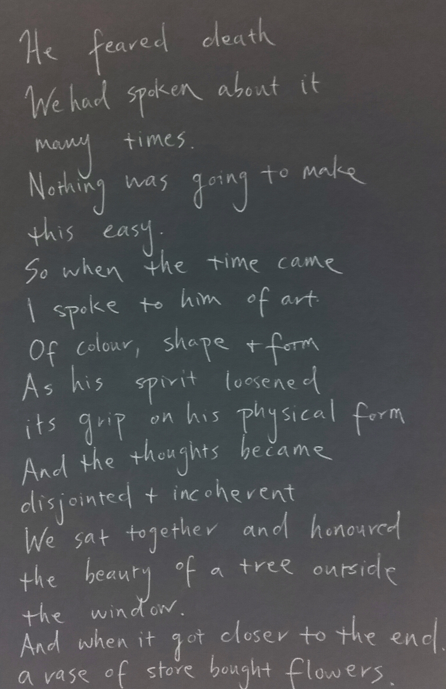 I have recently been using short prose to unlock the unspoken experiences that accompany death. The healing power of words, poetry and stories seem to release a holding from within and on the page, the moment is framed and given some space to breath. Translating these prose into abstract expression, has helped me to acknowledge that beyond physical form there is an elemental experience, where life is not distinguished between object and form and where continuity is an absolute truth. Strangely and unintentionally, these three people knew each other and they sit as a series of little death, they were great forces of love in my life and remain so.